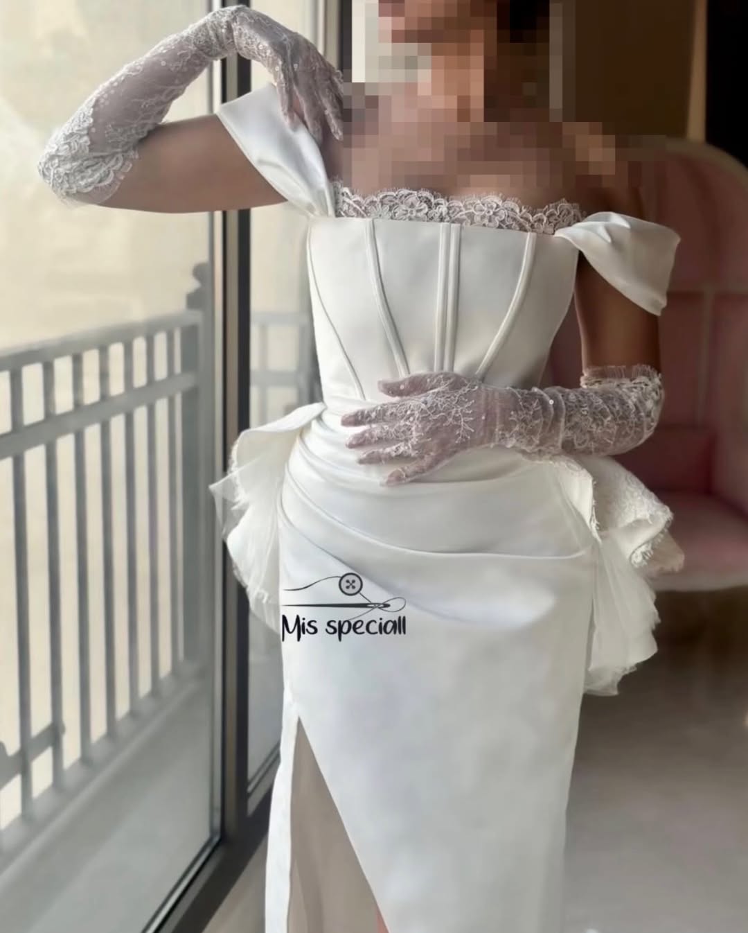 پیراهن مجلسی سفید ژورنالی با زیرساز کامل